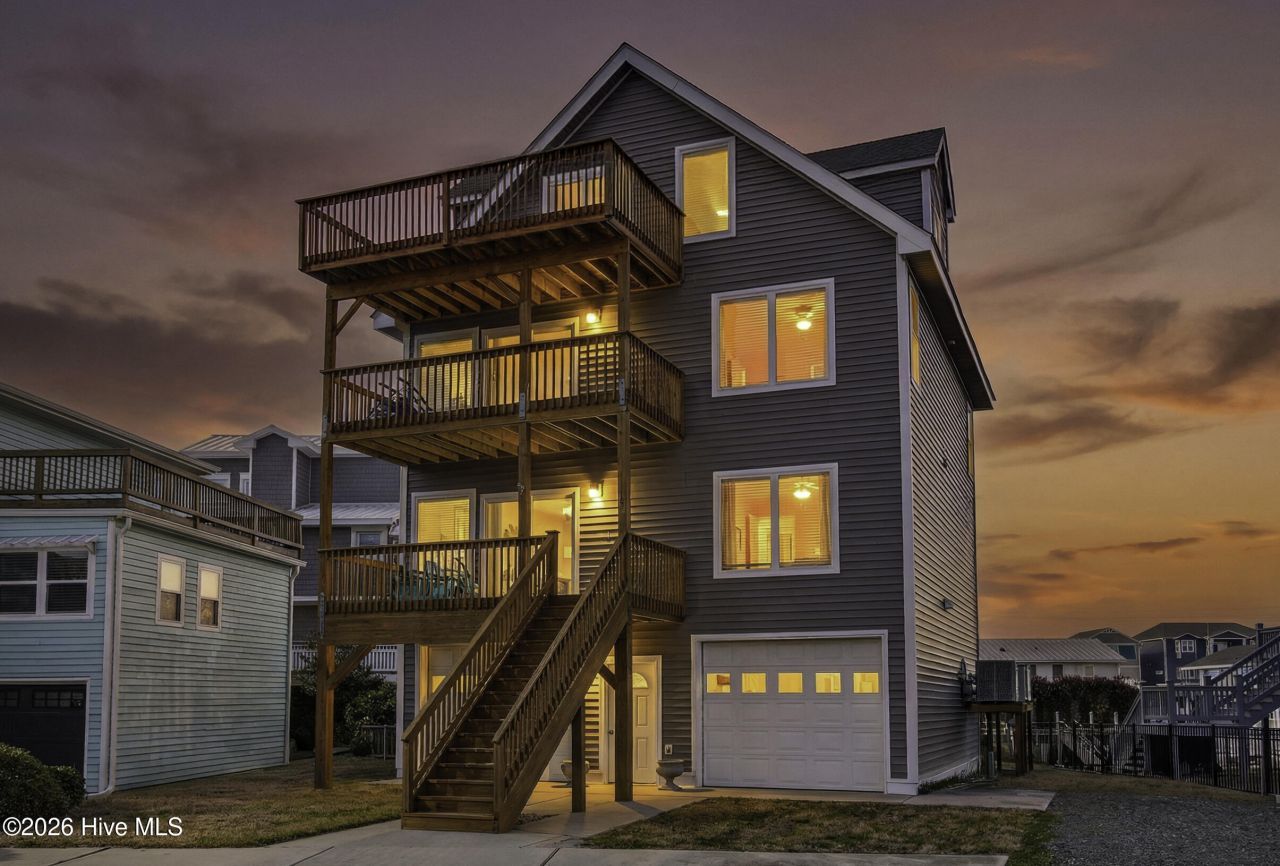 A rare dual-water offering, this canal-front residence is positioned across from Beach Access 19 on the South End of Topsail Beach - placing the Atlantic Ocean at your doorstep and a dock on the canal just beyond the back deck.Begin your mornings with ocean sunrises, spend the afternoon kayaking or fishing from the canal, and end the day with sunset views stretching across the Intracoastal Waterway. With water on both sides and views from nearly every room, this home captures the essence of coastal living.Fully renovated in 2018 and exceptionally maintained, the home pairs clean coastal design with thoughtful functionality. Abundant natural light fills the interiors, while six distinct decks offer multiple vantage points to enjoy both ocean and canal views from every level.The entire top floor is devoted to an impressive owner's retreat featuring a spacious primary bedroom, well-appointed bath, sitting room, study, and lounge. Two separate decks overlook both the canal and the ocean, offering the most elevated perspective in the home.The second floor includes an additional bedroom with ensuite bath and its own canal-facing deck, along with a dedicated living room that creates flexible gathering space for guests or extended family. With living areas on every floor, the layout balances connection with retreat.Offered fully furnished and turnkey, the property is ready for immediate enjoyment. Enhancements include an EV charger, outdoor shower, generous garage storage with workshop space, and three HVAC systems (2014, 2024, 2025).Whether envisioned as a primary residence, vacation home, or investment opportunity, this exceptional dual-water property delivers location, versatility, and lasting lifestyle appeal in one of Topsail Beach's most desirable settings.