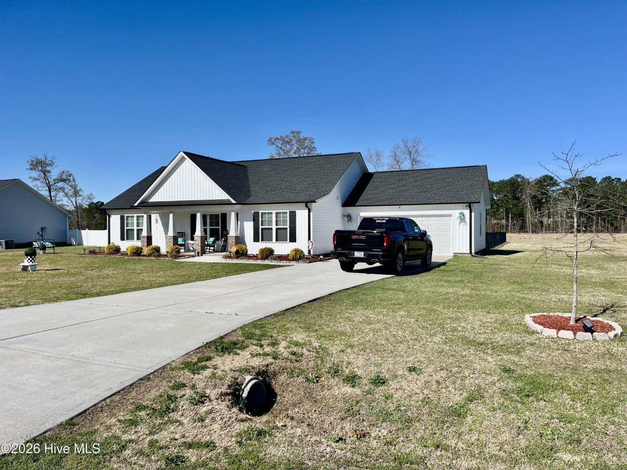 Beautiful move-in ready home in Glenn's Landing with so many extras you have to see it to believe it! The Marilee ranch plan features 3 bedrooms & 2 full baths with 1422 of well thought out living space and a relaxing rocking chair front porch. The large family room opens to the dining area & gorgeous kitchen that boasts granite counter tops, plenty of cabinet space for all your kitchen items, stainless steel appliances, eat-at bar, & pantry. Split bedroom floor plan offers maximum privacy for everyone. Spacious owner's suite with adjoining bath includes double sink vanity & walk-in closet. Separate laundry room & back covered screened-in porch, plus patio, fully fenced backyard & storage shed round out this absolutely STUNNING home. The 2-car attached PAINTED garage & concrete drive are just added bonuses! Located on a generous .48-acre lot close to SJAFB, shopping, Hwy 70 and all Wayne County has to offer. If you blink, you'll miss it!