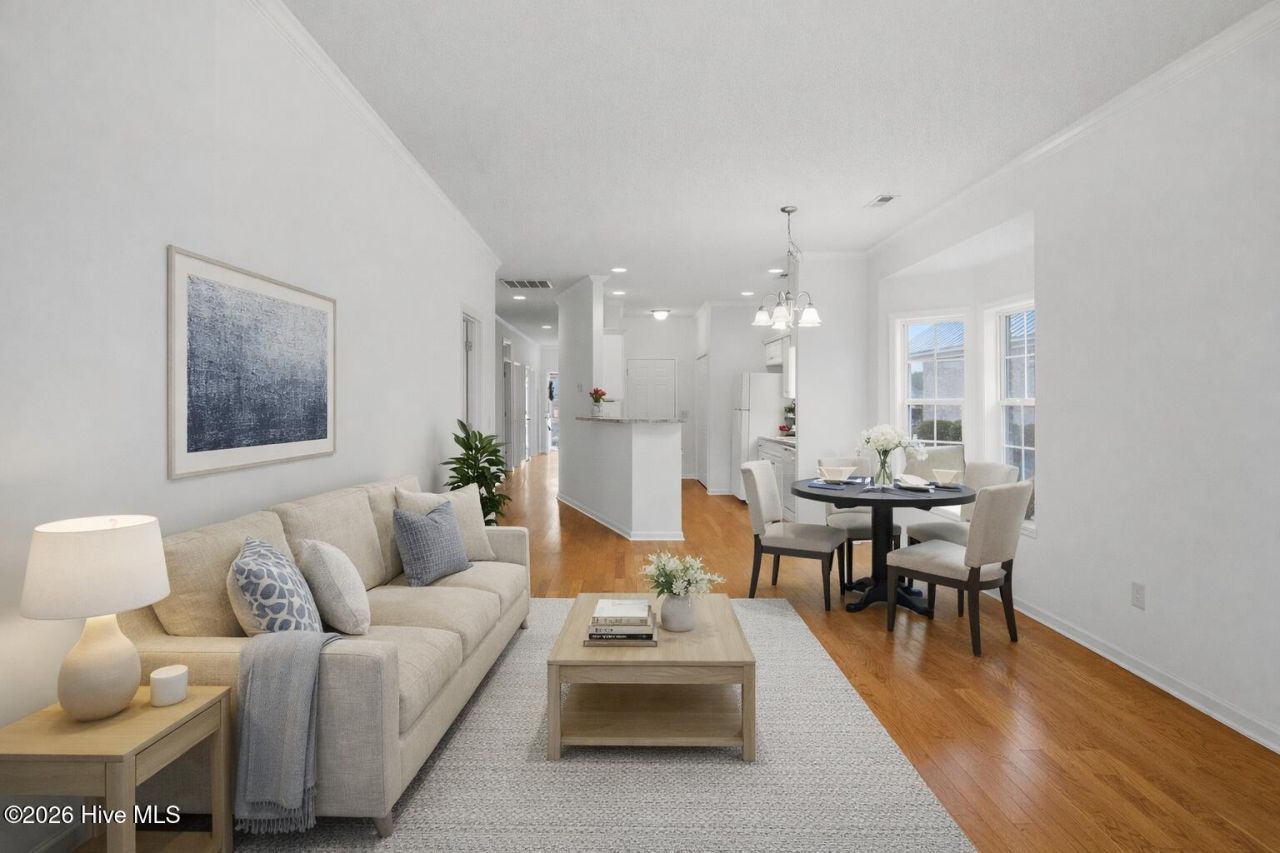 Here is the beautifully maintained end-unit townhome in Mallory Creek you've been searching for. Mallory Creek is one of Leland's premier, amenity-rich communities offering the biggest bang for your buck between the two sparkling community pools, to miles of walking and cycling opportunities, playgrounds, and neighborhood events. Offering two bedrooms plus a third room that can work as an office, formal dining room or flex space, three dedicated parking spaces, and a single-car attached garage, this end unit townhome combines comfort, convenience, and low-maintenance living in one of the area's most requested neighborhoods.Step inside to brand new paint throughout, brand new carpet, engineered hardwood floors throughout the main living areas, crown molding, and an inviting open layout perfect for everyday living and entertaining. The dining nook flows seamlessly into the kitchen, which features loads of natural light that interior units don't have, an electric range, built-in microwave, pantry storage, and ample cabinetry. Step outside onto your screened in back porch for coastal living at its' finest. You have the option to fully fence your backyard should you want more privacy. The primary suite overlooks the backyard and offers a walk-in closet, ceiling fan, and a spacious en-suite bath complete with a garden tub and shower combination. Guest bedrooms feature brand new carpet, and tile flooring accents the bathrooms for easy maintenance.Enjoy coastal Carolina evenings from your covered front porch or relax in the screened back porch with ceiling fan -- the perfect extension of your living space.As a resident of Mallory Creek, you'll enjoy access to exceptional amenities including two community pools and clubhouses, regular neighborhood events, two playgrounds, miles of sidewalks ideal for walking or biking, and brand-new sports courts. All of this just minutes from shopping, dining, medical, golf, and an easy commute into Wilmington or Leland.End-unit location and steps to the pool.This is the one you've been waiting for. Schedule a showing today.
