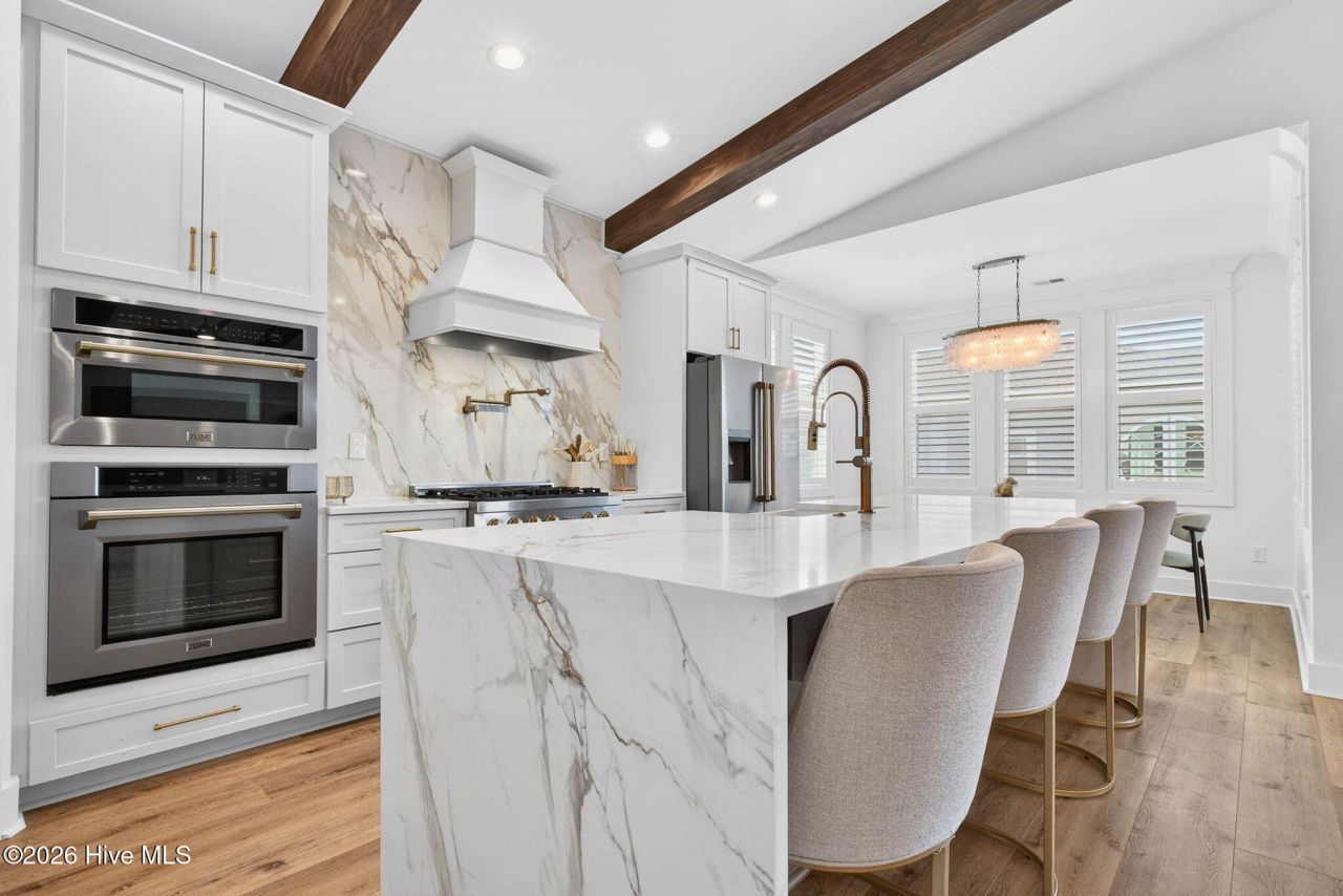 Welcome to 131 Shallotte Boulevard, Ocean Isle Beach, an extraordinary coastal estate that stands among the finest and most beautifully appointed homes on Ocean Isle Beach. Perfectly positioned on a private corner lot, this exceptional residence offers breathtaking water views in every direction -- including Ocean views, Intracoastal Waterway views, inlet views, and unforgettable sunrise and sunset vistas that define the very best of coastal living.Thoughtfully designed with both elegance and comfort in mind, the home showcases designer selections, custom trim work, and soaring vaulted ceilings that create an inviting yet sophisticated atmosphere throughout. Every space has been carefully curated with high-end finishes and beautiful furnishings, making this home truly turnkey and ready to enjoy from the moment you arrive.At the heart of the home is a stunning designer kitchen, crafted for both everyday living and entertaining. The space features waterfall-edge countertops on the oversized island, upgraded appliances, and custom cabinetry, all seamlessly flowing into open living areas designed to capture the surrounding water views.The primary suite is a private retreat, offering a luxurious spa-like bathroom and an expansive walk-in closet, delivering the comfort and refinement expected in a premier coastal home.Outdoor living is nothing short of spectacular. Expansive front and rear decks provide panoramic vantage points to take in the island's most incredible scenery. The backyard oasis features a heated pool, hot tub, and a custom tiki bar with covered entertaining area, creating the ultimate setting for relaxing evenings and unforgettable gatherings with family and friends.Located just steps from direct beach access and Ferry Landing Park, this home offers a rare blend of privacy, natural beauty, and convenience. Additional highlights include extensive garage storage, premium craftsmanship throughout, and thoughtfully designed spaces that maximize both views and functionality.With incredible water views in every direction, luxurious designer finishes, and resort-style outdoor living, 131 Shallotte Boulevard represents a truly rare opportunity to own one of the most exceptional properties on Ocean Isle Beach.This is more than a home -- it is coastal luxury at its absolute finest.