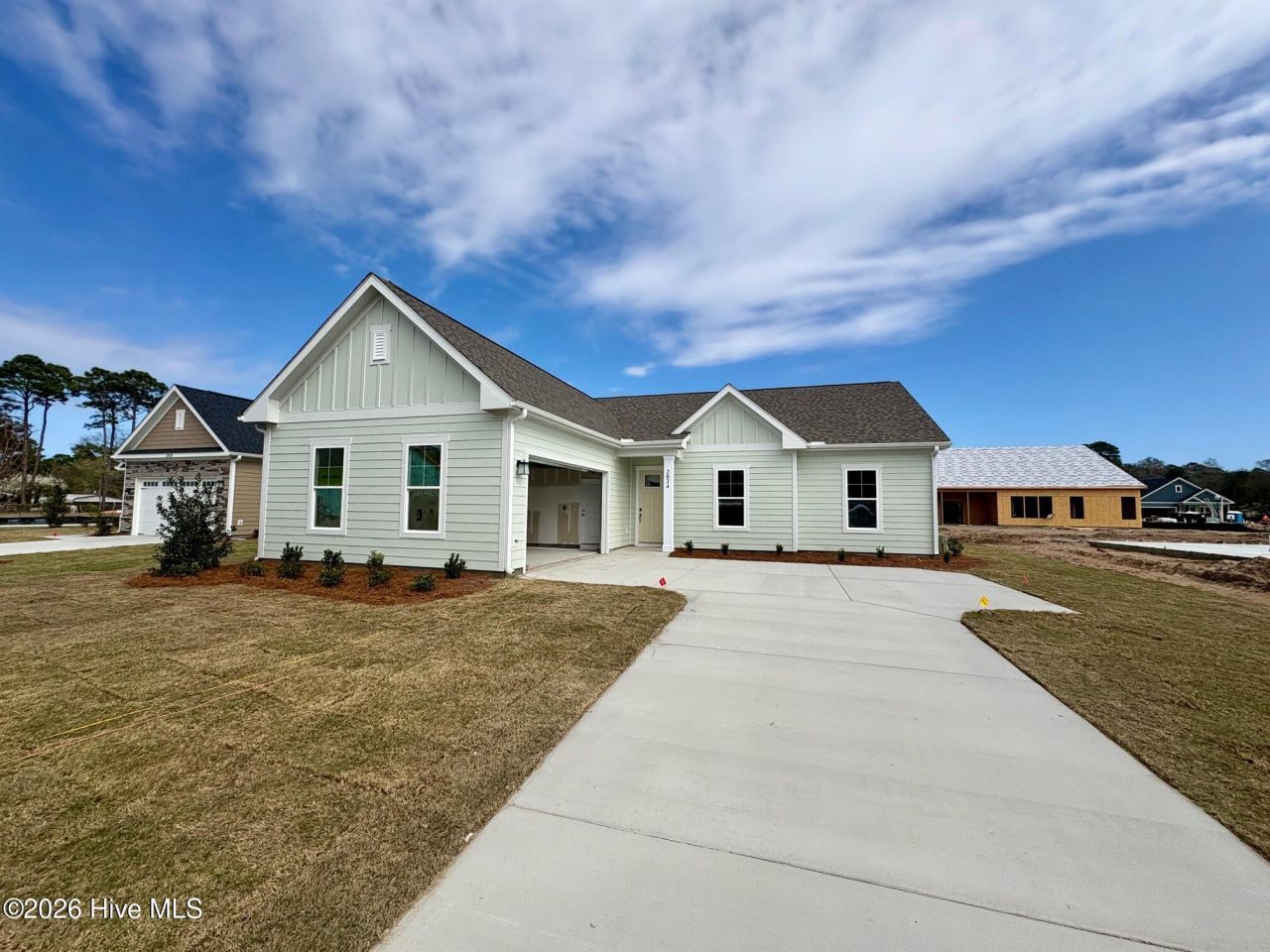 Move in April 2026, just in time to enjoy the Spring season by the sea! , just in time to enjoy the Spring season by the sea! This beautifully crafted 3-bedroom, 2.5-bath Salters floorplan offers 2,395 sq. ft. of thoughtfully designed living space, including a dedicated flex space for added convenience. The home features 10' ceilings, and a tailored gourmet kitchen layout with premium finishes perfect for entertaining. The primary bath layout includes a large walk-in shower, creating a spa-like retreat. Additional highlights include an electric fireplace in n the family room and expansive living areas filled with natural light.Enjoy the best of coastal living with a screened patio and an open grilling patio, ideal for relaxing or hosting guests. Located in The Waters at Southport, residents enjoy walkable access to charming shops, waterfront dining, and scenic views in the heart of downtown Southport.Just minutes from Southport Marina, Oak Island beaches, and historic downtown attractions, this home offers easy access to coastal recreation, boutique shopping, and local eateries.This home won't last long! Tour our model home today and ask about our current incentives to unlock your new home in The Waters at Southport.