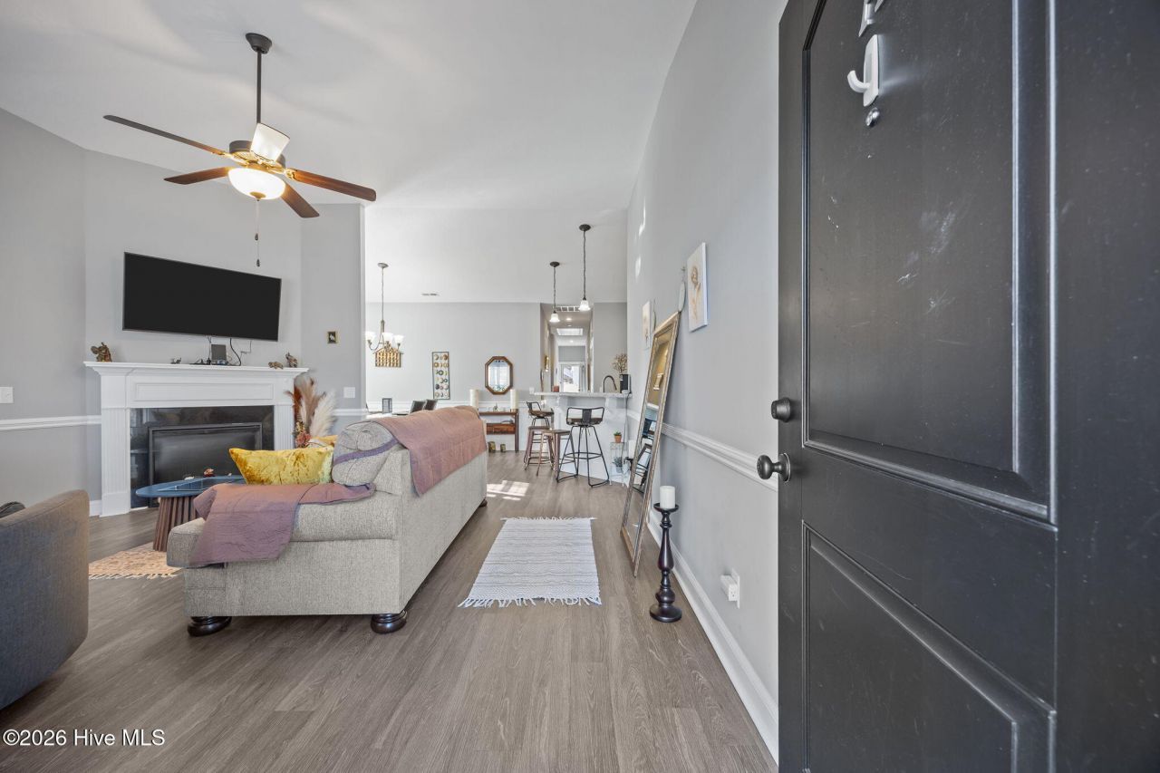 Step into this beautifully cared-for one-level home that truly shows like a showroom! Offering 3 bedrooms, 2 full baths, and a garage, this property combines comfort, style, and convenience in a sought-after location. Inside, you'll find a spacious living area with vaulted ceilings and a cozy corner fireplace, creating an inviting space to relax or entertain. The open-concept layout flows seamlessly into the kitchen and dining area, where you'll enjoy stainless steel appliances, rich espresso cabinetry, generous counter space, and a convenient bar for casual seating. The primary suite provides a comfortable retreat with a well-appointed en-suite bath featuring dual vanities, a jetted soaking tub, a separate shower, and a walk-in closet. Out back, unwind in the fully fenced yard with vinyl privacy fencing--perfect for pets, gardening, or hosting gatherings. The covered porch offers a great spot to enjoy outdoor living year-round. Ideally situated near ECU Health, East Carolina University, shopping, dining, and easy access to Hwy 264, this move-in-ready home offers both convenience and charm. Schedule your showing today--this one won't stay on the market long!