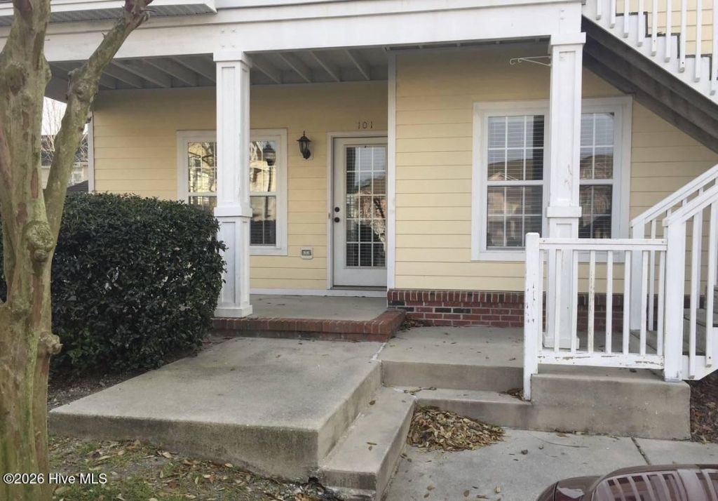 Trolley Path is a lovely, well maintained condominium complex in one of Wilmington's most convenient locations- just minutes from downtown, the River District, Wilmington International Airport, UNCW and Wrightsville Beach. Walk out your back door to the River to Sea Bikeway.This ground floor, corner unit is close to the mailboxes and extra guest parking. The front and back doors make it easy to bring in groceries, and the lush landscaping makes this unit's front and back covered porches feel private like you have a front and side yard all your own. The back porch also has a large locking storage room with plenty of space for beach chairs, bikes, tools and boxes.Inside, the open concept layout is bright and spacious with plenty of windows- designed for entertaining with a large eat-at-bar between the kitchen and living room. This 1180 square foot 2-bedroom 2-bath unit's main bedroom has two walk-in closets and its own bath with two sinks and a long garden tub. The large second bedroom is on the other side of the unit from the main, giving privacy there as well. The laundry closet comes with washer and dryer included. Recent updates include new HVAC in 2022 and new dishwasher in July 2025. Current tenant in place on a month-to month lease and they are willing to leave or stay. They pay $1250 per month but units in Trolley Path are renting for $1500 plus per month.