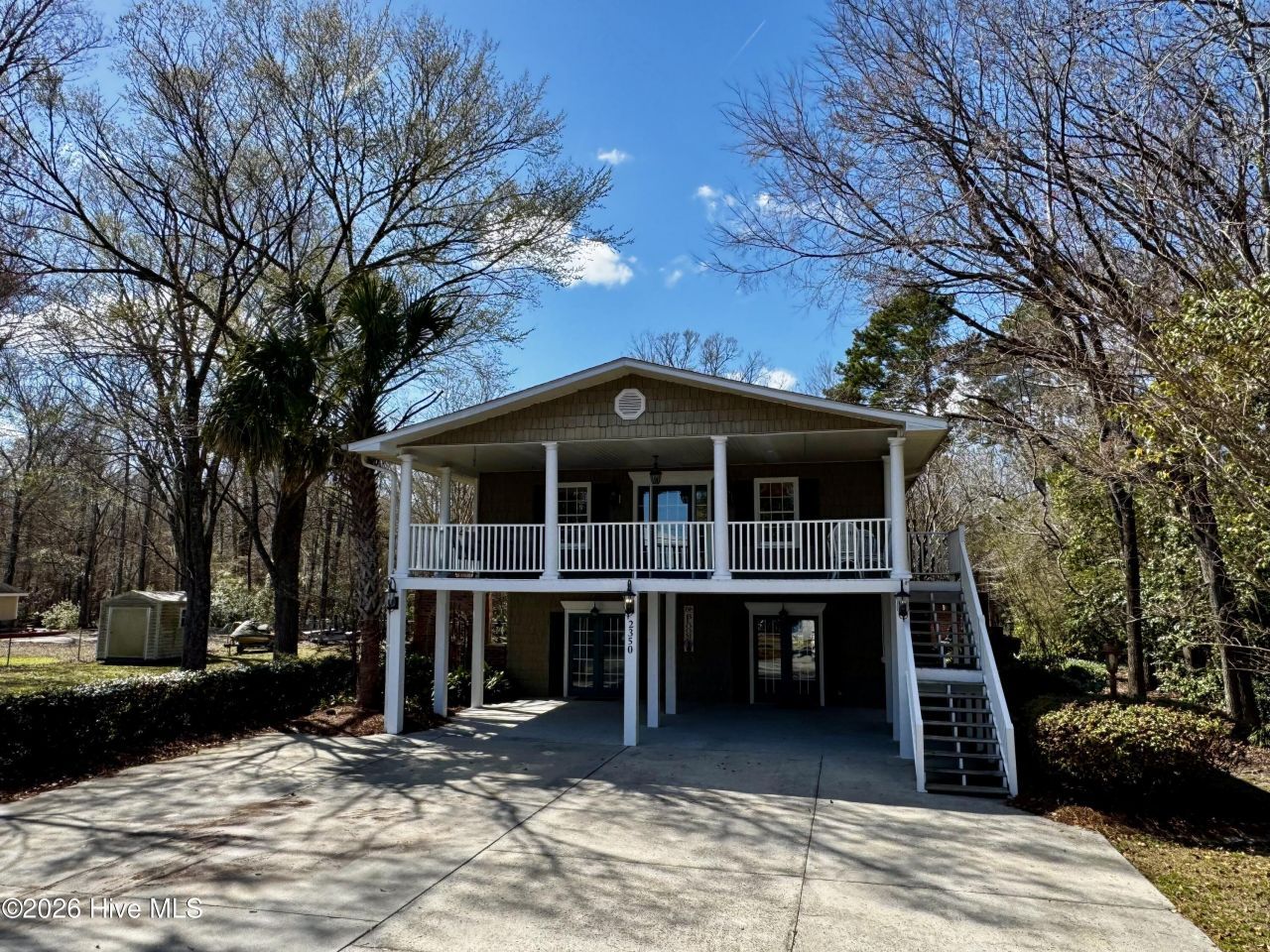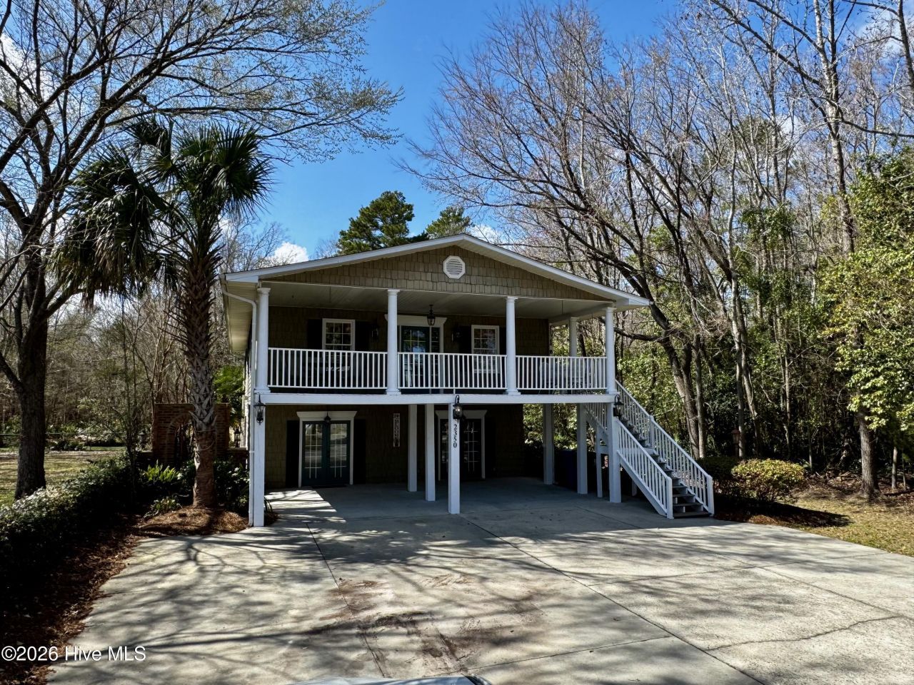This beautifully updated two-story, 4-bedroom, 3-bath home sits on a 50' x 150' lot and is truly one of the most unique properties at Lake Waccamaw. Privately tucked between a wooded lot and a vacant lot, the home offers peaceful surroundings while overlooking a canal that borders the backyard. From its second-row location, the property faces the lake and enjoys lovely lake views, along with deeded lake access and a shared pier just steps across the road.The home also offers excellent flexibility and can easily function as a duplex, featuring two separate living areas. The upstairs and downstairs levels are connected by an interior stairwell that can be secured by locking doors at both the top and bottom, allowing the spaces to be used together or independently.Upstairs, you'll find two bedrooms and two full bathrooms, a gorgeously updated kitchen, breakfast nook, laundry closet, and a comfortable living room. The large front porch provides a relaxing place to unwind while enjoying scenic views across the lake.Downstairs features two additional bedrooms and one full bathroom, another stunning kitchen, a living room, foyer, and laundry closet. Step outside to a covered patio overlooking a beautifully landscaped backyard complete with thoughtful lighting and landscaping.The property offers ample parking with a two-car carport and a generous circular driveway. A separate exterior staircase leads directly to the upstairs front porch, which also enjoys sweeping lake views.Beneath the staircase, a charming brick pathway lined with lush greenery leads to a wrought-iron gated brick archway. Beyond the gates lies a Charleston-style courtyard overlooking a tranquil canal framed by majestic cypress trees draped in Spanish moss. The centerpiece of this private oasis is a brick and stone patio anchored by a custom-designed oversized outdoor brick fireplace--perfect for entertaining or relaxing in your own secluded garden retreat.Just minutes down the road located on Canal Cove you have access to a public boat ramp to launch into the lake. Located within an hour of Wilmington, Brunswick County and SC beaches.