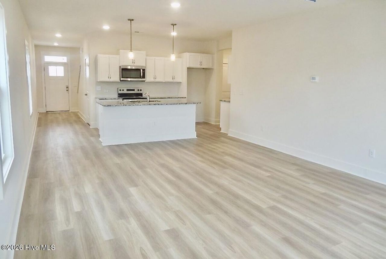 This well designed living space features 3 bedrooms and 2.5 baths in the new Brookfield Branch community. This home features a desirable primary suite on the main level and an open concept kitchen, dining, and living area. The kitchen includes granite countertops, pendant lights, and white shaker cabinetry, while the bathrooms feature quartz countertops, white shaker cabinets, and a tile shower in the primary bath. LVP flooring is featured throughout the home. There are planned community amenities including a pool, open-air clubhouse, playground, fire pit gathering area, sidewalks, and streetlights throughout. The home is located in Hampstead in the Topsail School District and a short drive to beaches, shopping, and dining. Reach out today for more information!