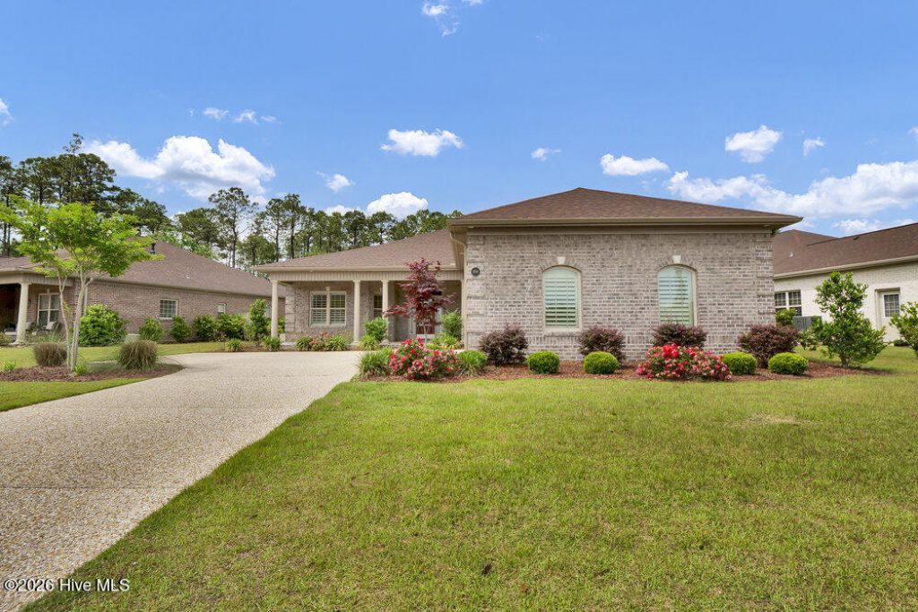 This all-brick, single-story home in The Village at Motts Landing offers low-maintenance living with lawn and shrub care included through the HOA. With 2,332 square feet, it features 3 bedrooms, 2.5 baths, and a split-bedroom floor plan that provides added privacy to the primary suite, which includes a walk-in tile shower with grab bars and a garden tub. Charming details throughout include hardwood flooring in the main living areas, plantation shutters, and an office with a coffered ceiling. The living room offers an electric fireplace with built-ins and telescopic doors that open to a glass-enclosed sunroom (not heated) with a beverage fridge and sink?perfect for casual entertaining. The spacious kitchen includes a center island and an adjacent dining area. All appliances and the 60-inch TV convey with the home. Additional features include a 13' x 6' temperature-controlled storage room in the garage and a backyard that backs up to a wooded common area for extra privacy. Residents of The Village at Motts Landing enjoy two clubhouses, two pools, a fitness center, and pickleball courts?making this home a perfect blend of comfort, convenience, and community.