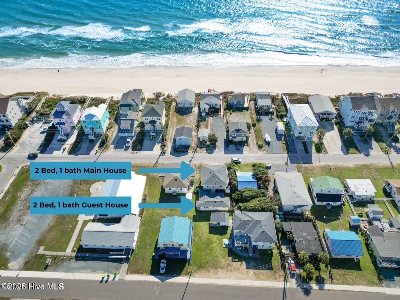Just a 1/2 mile from the Surf City Pier, this unique property offers two beautiful single-family homes on one second-row lot?sold together and ready to continue generating strong rental income or serve as your perfect beach retreat.The front home, elevated on pilings, features 2 bedrooms, 1 full bath, a deluxe kitchen, and a spacious living area. Enjoy ocean views and sea breezes from the expansive covered front porch?an ideal gathering space for relaxing or entertaining.The second home, tucked just behind, is a charming ground-level 2-bedroom, 1-bath guest suite with a full kitchen and living area. This suite has brought in over $25,000 in income this year, making it a proven short-term rental performer.Each home has been extensively updated with the second home coming furnished?right down to linens, bath amenities, and guest essentials?making this a true turn-key investment opportunity. Two covered parking spaces, additional driveway parking, separate laundry for each home, and multiple storage areas provide ample convenience.Outdoor living is a highlight, with two outdoor showers, a storage building for beach gear, and a nearby public beach access just a few lots away. Walk or bike to downtown Surf City's restaurants, shops, and nightlife?all just blocks from your doorstep.Whether you're looking to invest, house hack, or create a family beach compound, the possibilities here are endless. Take the helm?this Surf City gem is ready for you to enjoy or start earning immediately.