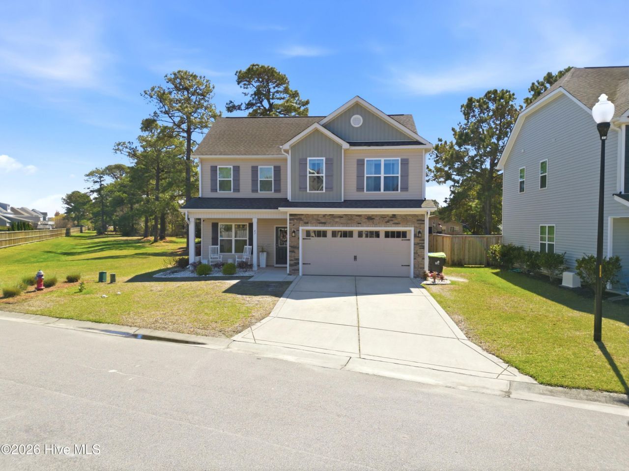 Welcome to 47 Peoples Court in the sought-after Wyndwater community of Hampstead. Built in 2018 and tucked on a cul-de-sac, this 3 bedroom, 2.5 bath home offers 2,147 square feet of comfortable living with the layout today's buyers want, open, functional, and full of natural light.The main level features a spacious living area with a gas log fireplace, a formal dining room for gatherings, and a breakfast nook that flows into the kitchen with granite countertops and plenty of workspace. Upstairs you'll find the primary suite with a trey ceiling, a large walk-in closet, and an en-suite bath with a garden tub and separate shower. Two additional bedrooms, a bonus room, and convenient laundry complete the second floor.Outside, enjoy a fenced backyard plus covered front and rear porches, ideal for morning coffee or relaxing at the end of the day. An attached 2 car garage adds everyday convenience. An added bonus, the HOA maintains the area to the left of the home, providing extra breathing room and a well-kept feel.Wyndwater is known for its neighborhood pool, sidewalks, and a welcoming community vibe, all just minutes from Hampstead's shopping, dining, and everyday essentials, plus an easy drive to Wilmington and area beaches. This is a great opportunity to enjoy a well maintained home in one of Hampstead's most popular neighborhoods.