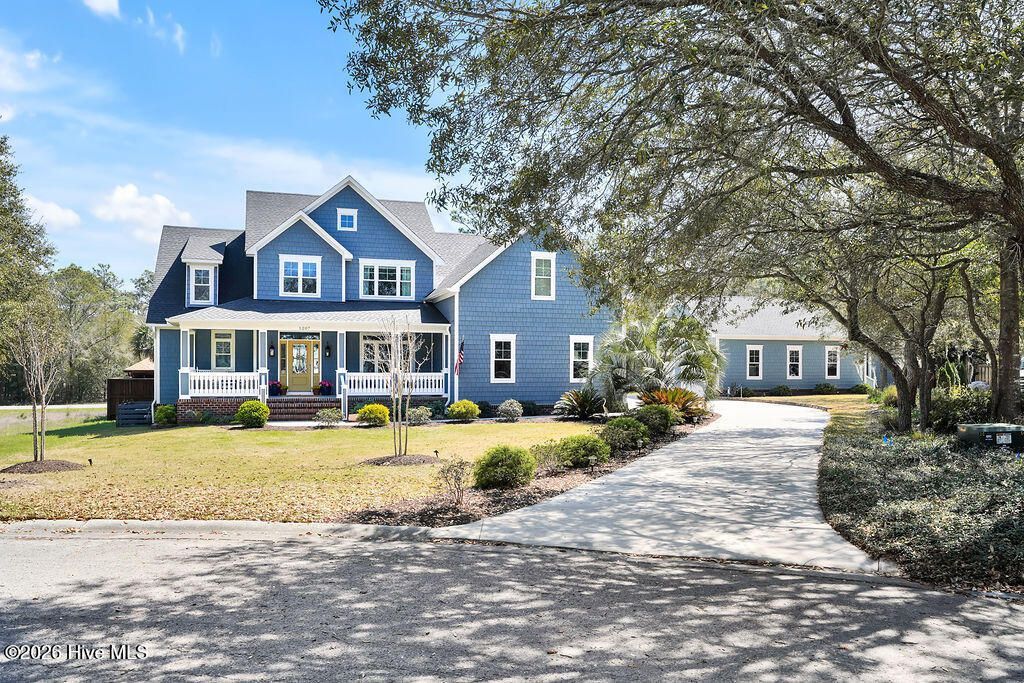 If you have been waiting for a spectacular property, this custom-built coastal Craftsman home on nearly half an acre is a must-see. Featuring low-maintenance Hardie Plank siding and exceptional detail throughout, this residence offers everything you are looking for.The main level features 9-inch bamboo hardwood throughout, a formal dining room, and a family room with a fireplace. The primary suite is located on the main floor, along with a second bedroom featuring its own private bath. The kitchen is a dream, complete with marble countertops, a coffee bar with a sink, an eat-in bar, a gas cooktop with a designer hood, and stainless steel appliances.Upstairs, you will find two additional bedrooms with a shared full bath, plus a finished flexible space over the garage. The property also includes a stunning four-season room with its own fireplace and climate control, leading to an oasis in the backyard.Additional features include:- Storage & Workspace: Attached 2-car garage, oversized detached garage/shop with oversized doors, and a separate lawn shed.- Systems: Zoned HVAC (natural gas furnace on main, heat pump upstairs), 300-amp electric service, whole-house water filtration, and an on-demand gas water heater.- Exterior: Stamped concrete walkway, welcoming front porch, and a well-fed irrigation system with three strategic pump stations.- Special Feature: A secret, hidden safe room.There is so much more to see--you truly need to experience this home in person.Regarding the location, you are just a short walk or golf cart ride away from beautiful downtown Southport and conveniently close to the ferry.