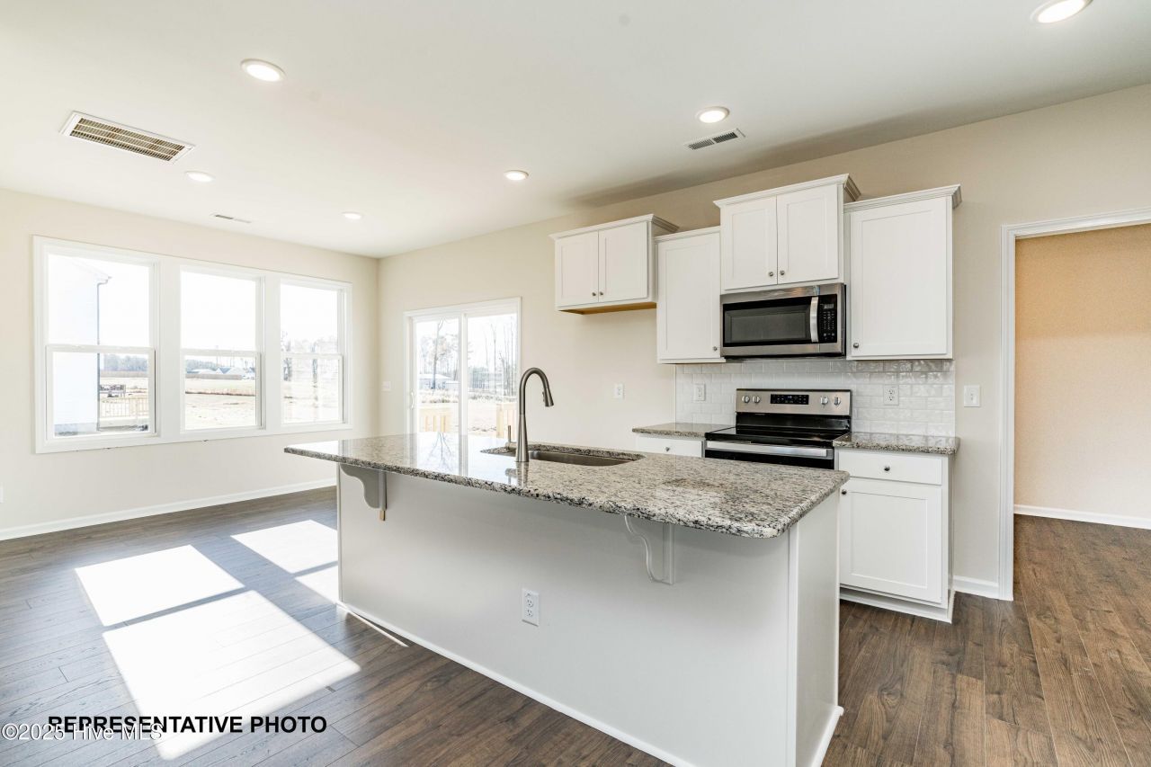 Don't miss this gorgeous home with 3 bedrooms and 2 1/2 baths on a large lot in the beautiful Harvest Meadow community! Kitchen features granite countertops, tile backsplash & stainless steel appliances. Large living room with cozy fireplace. First floor main suite with ceiling fan, double walk in closets & 5ft shower. Entertain on the private patio/deck overlooking the spacious backyard. Photos of similar homes and cut sheets are for representation only and may include options, upgrades or elevations not included in this home.