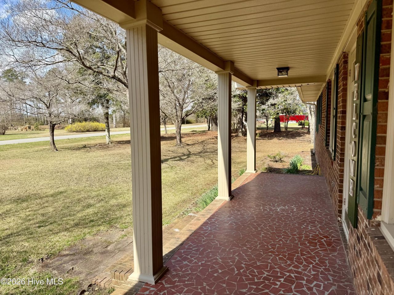 Attractive brick ranch in a country setting offers a welcoming covered front porch, spacious living room w fireplace, built-in desk plus a formal dining room w glass display cabinets. The flex room could be an additional sitting area, play room or office. You will love the kitchen w walk-in pantry, room for a breakfast table & easy access to the enclosed back porch. The owners bedroom offers dual closets & bathroom w shower. Two additional bedrooms & a hall bath w tub/shower combo. The attached garage has room for storage plus a walk-up attic area. Need a workshop & more storage? This property has three options: detached garage/workshop w additional attached storage. A second building that can serve many purposes, plus a large open shelter perfect for boat, RV or side by side. The yard is 1.73 acres filled w flowering trees and shrubs. What a great opportunity for the next owners!House is on county water. Well water also present at storage building. Heat pump is main HVAC. Oil furnace is auxiliary. UST behind house by drive in garage door and back porch.