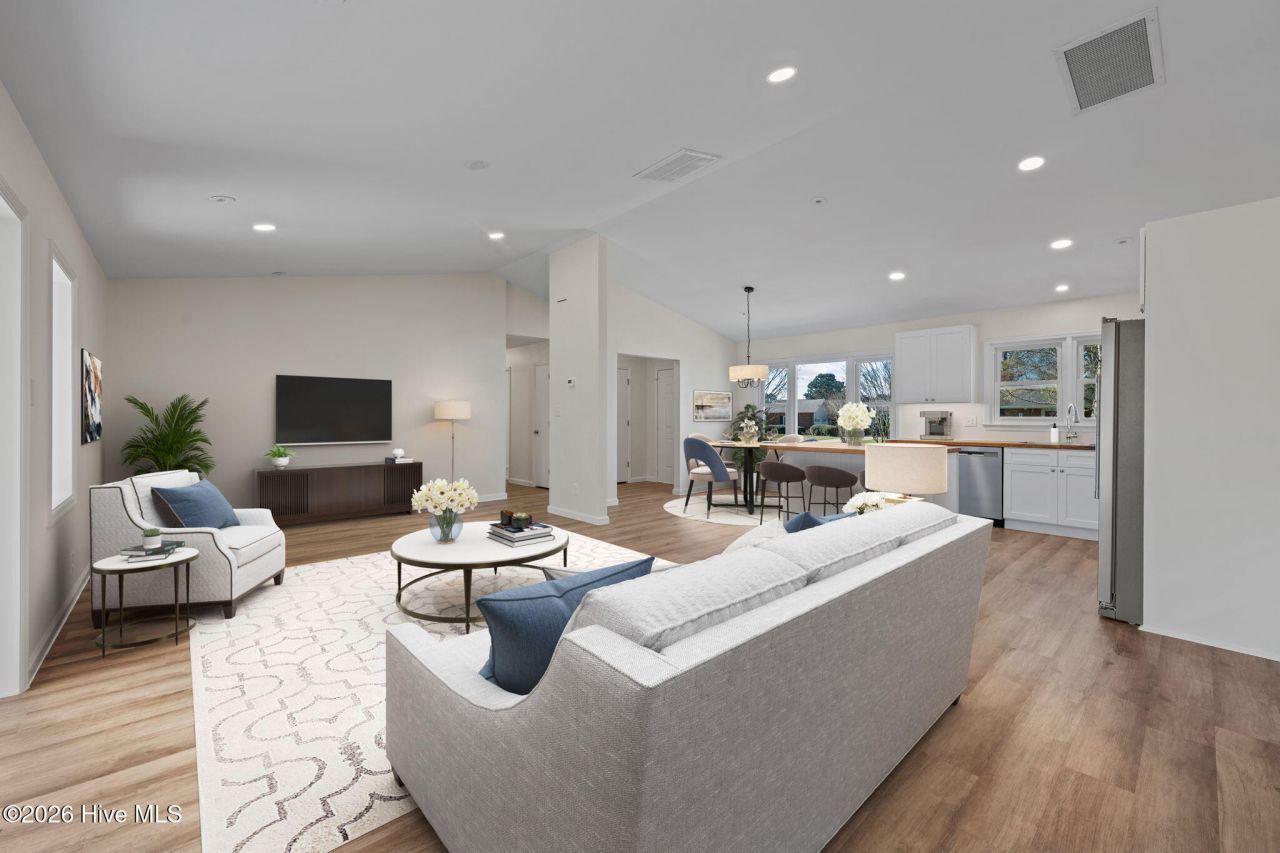 Charming canal-front home located on a quiet cul-de-sac in desirable Fairfield Harbour. This freshly updated 3-bedroom, 2-bathroom home features a beautiful sunroom filled with natural light, perfect for relaxing or entertaining. Recent updates include a brand new butcher block island, updated countertops, modern fixtures, new kitchen cabinets, lvp flooring and new carpet. Enjoy direct water access with a private dock and dedicated space for a boat, making coastal living easy and convenient. Situated on a nice lot with room to enjoy the outdoors, this home offers a peaceful setting with the benefits of a waterfront lifestyle.