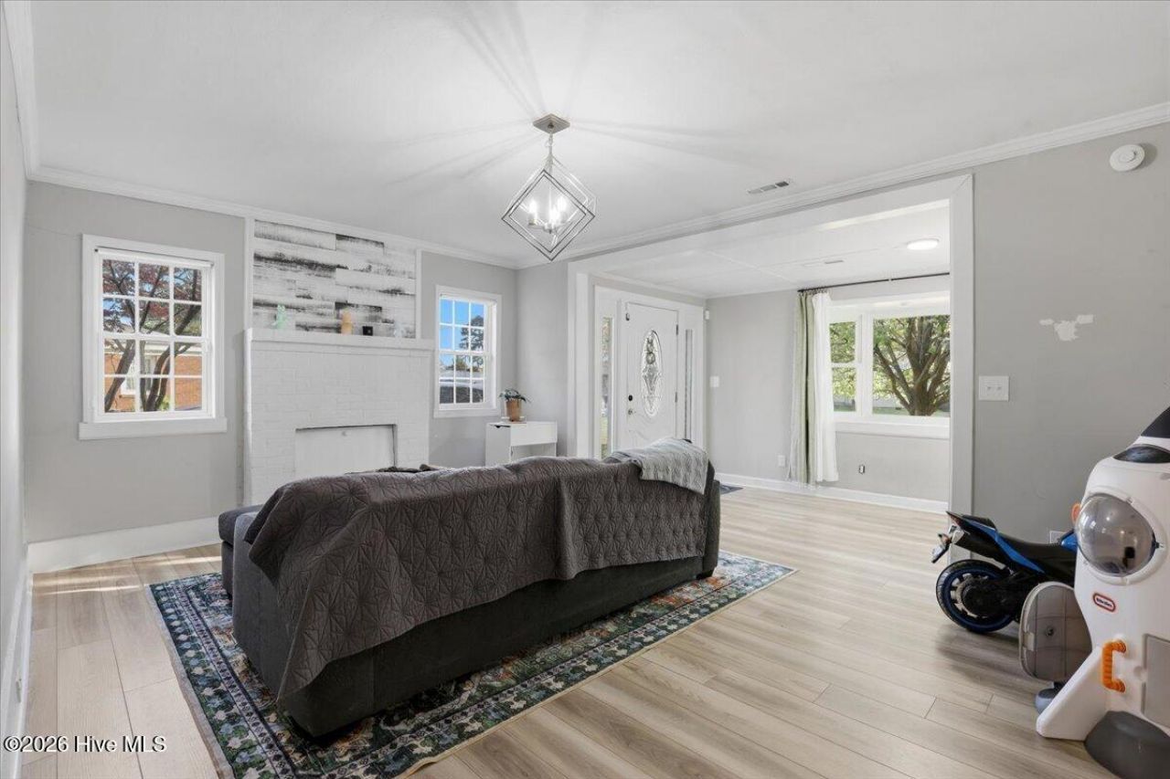 Charming 3 BR/2 BA with a Bonus Room; quartz countertops, laminate vinyl tile floors Centrally located near the local hospital, doctors' offices , grocery stores, restaurants, SJAFB, Herman Park, shopping, and downtown Goldsboro.There are two outbuildings (as is) with power in a fully fenced backyard